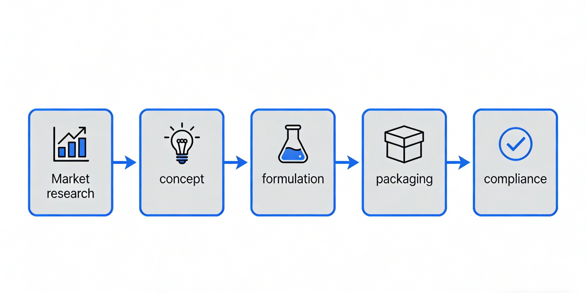 Обладая проверенным опытом работы с такими успешными продуктами, как Shiseido, Unilever и Perfect Diary, мы предлагаем комплексную поддержку — от маркетинговых исследований до соблюдения нормативных требований — при поддержке специализированных команд для оперативного реагирования на запросы клиентов.