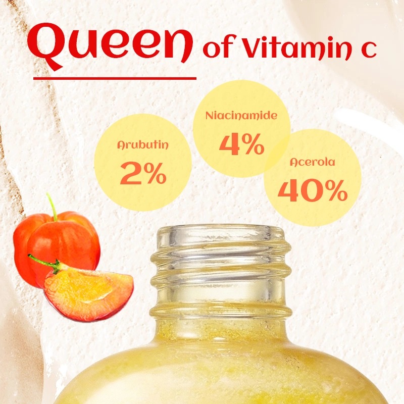 ⇒ Витамин С (40% экстракт ацеролы): Известная как «королева витамина С», вишня ацерола обеспечивает высокостабильную, мягкую форму витамина С, оказывает мощное антиоксидантное действие, осветляет тон кожи и поддерживает здоровье кожного барьера, обеспечивая длительное сияние.
