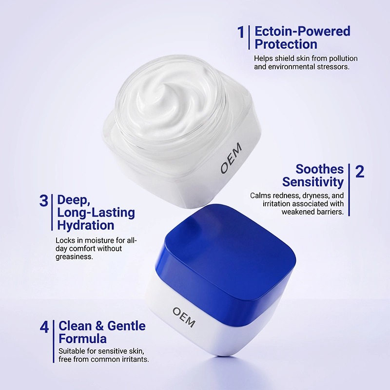 Этот защитный крем, созданный на основе высокоочищенного эктоина, помогает защитить кожу от воздействия окружающей среды, обеспечивая глубокое и длительное увлажнение. Он успокаивает сухость, покраснение и ощущение стянутости – идеально подходит для чувствительной кожи и кожи, подверженной воздействию городской среды. Насыщенная, но нежирная текстура быстро впитывается. Произведено в нашей чистой комнате, соответствующей стандартам GMPC, с возможностью индивидуальной настройки. Ему доверяют мировые бренды.