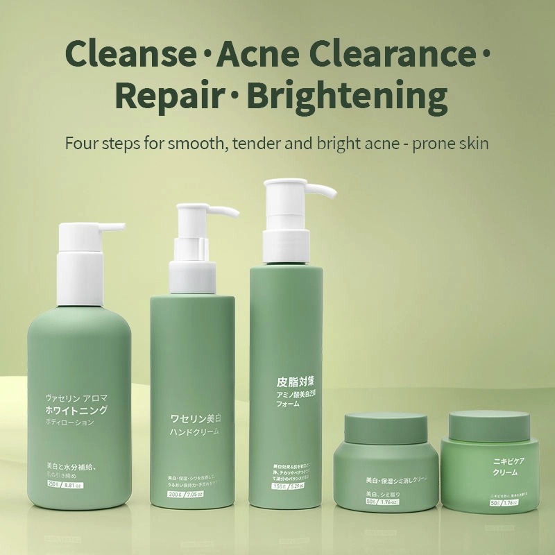 Этот японский набор из 5 средств по уходу за кожей использует мягкие и эффективные формулы с веганскими и органическими ингредиентами, подходящие для всех типов кожи. Он борется с тусклостью, пятнами и сухостью, отбеливая, увлажняя, осветляя и улучшая текстуру кожи. Легкие, нежирные кремы быстро впитываются, не содержат агрессивных химических веществ, оставляя кожу гладкой, ровной и сияющей. Идеально подходит для ежедневного использования и долговременного здоровья кожи. Этот комплексный уход помогает улучшить состояние кожи при темных пятнах, неровном тоне и высыпаниях. Он идеально подходит для личного использования, розничной торговли и проектов по созданию собственных торговых марок, отвечая высоким стандартам качества для мировых рынков Европы, Америки, Ближнего Востока и Юго-Восточной Азии.