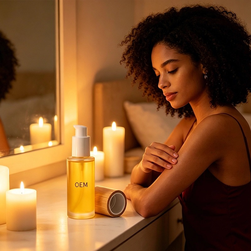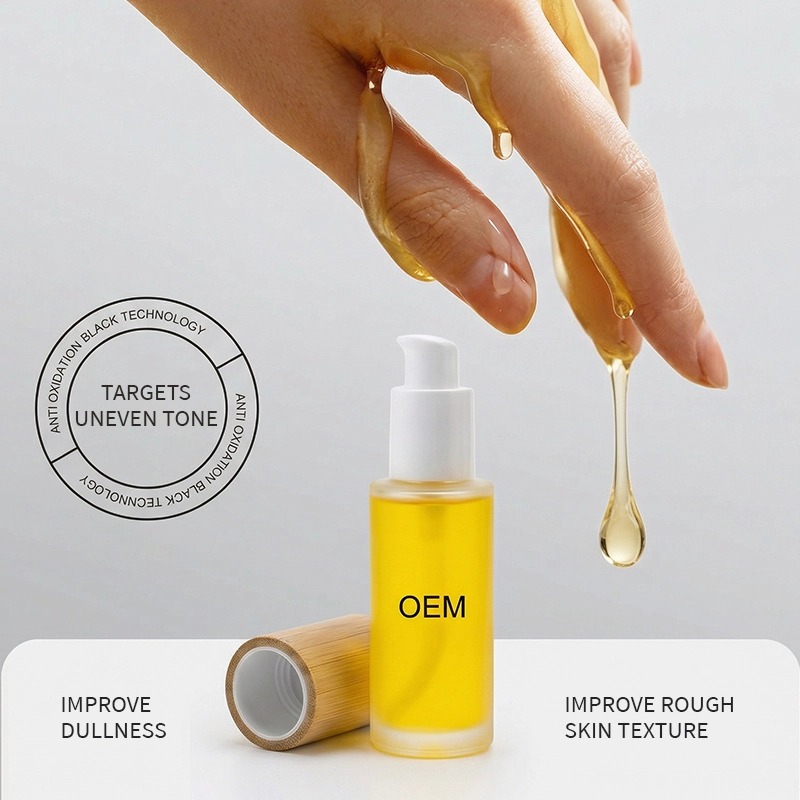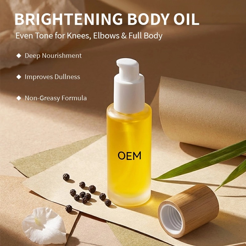Быстро впитывающееся осветляющее масло для тела, которое помогает уменьшить тусклость и выровнять тон кожи, не оставляя ощущения жирности. Обогащенное ниацинамидом и производными витамина С, оно придает лицу и телу естественный, сияющий вид. Разработано в соответствии с требованиями наших докторов наук и чистой комнаты GMPC. Низкий минимальный объем заказа, быстрая выдача образцов. Ваша формула, ваша упаковка. Готовы запустить чистое осветляющее масло для тела для вашего бренда? Давайте обсудим формулу, упаковку и минимальный объем заказа – образцы через 15 дней.