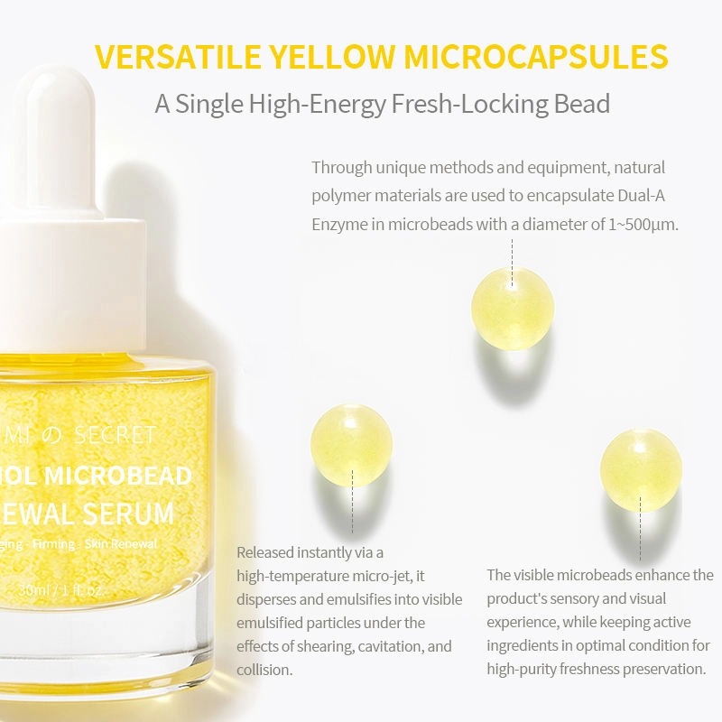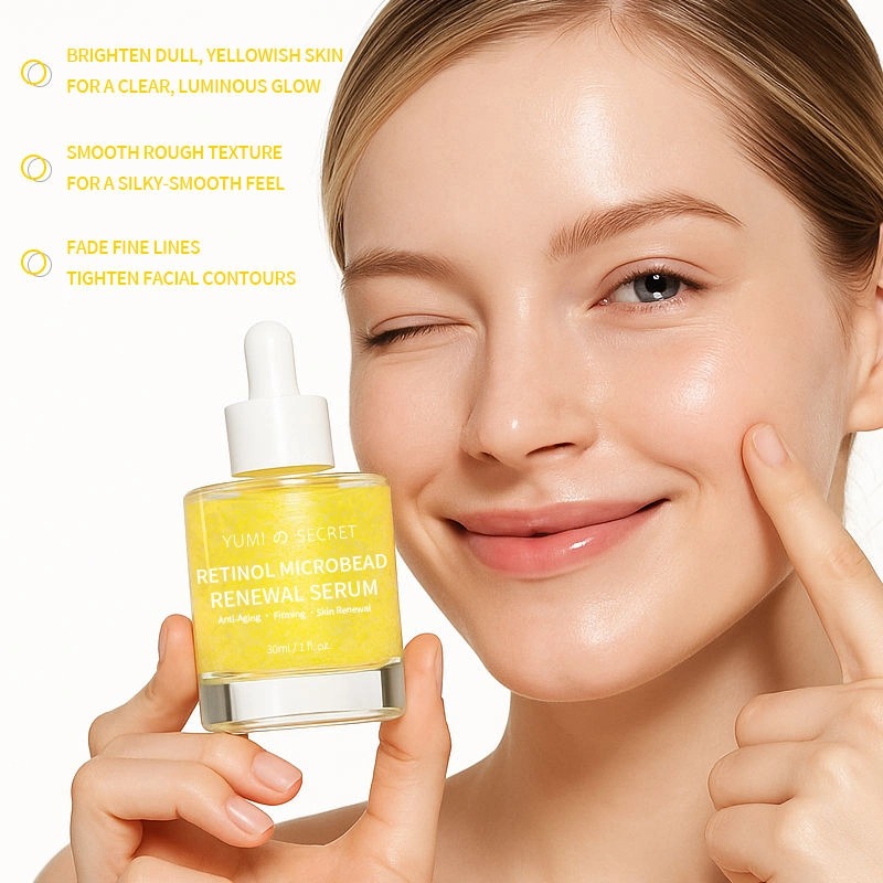 Наша сыворотка Retinol Microbead Renewal Serum — это высокоэффективное средство по уходу за кожей против старения с инновационной технологией микрокапсулирования, обеспечивающей сохранение свежести. Формула, содержащая ретинол, про-ксилан, коллагеновые пептиды и множество успокаивающих ингредиентов, обеспечивает подтягивающий, разглаживающий морщины, осветляющий, увлажняющий и восстанавливающий барьер кожи эффект. Благодаря легкой текстуре, подходящей для всех типов кожи, мы предлагаем полный спектр услуг OEM/ODM по индивидуальному заказу.