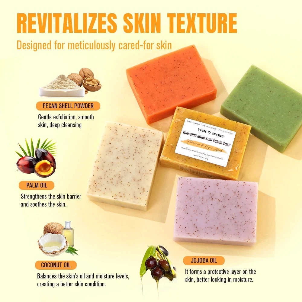 Это травяное мыло ручной работы с куркумой сочетает в себе натуральные веганские ингредиенты с мощными осветляющими и противоугревыми свойствами, эффективно уменьшая тусклость кожи и обеспечивая бережное ежедневное очищение для всех типов кожи. Сертифицированное по стандартам CPNP и HALAL, это твердое мыло с куркумой доступно для производства под собственной торговой маркой (OEM), с возможностью персонализации упаковки под ваш бренд.